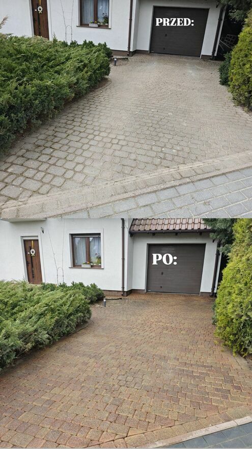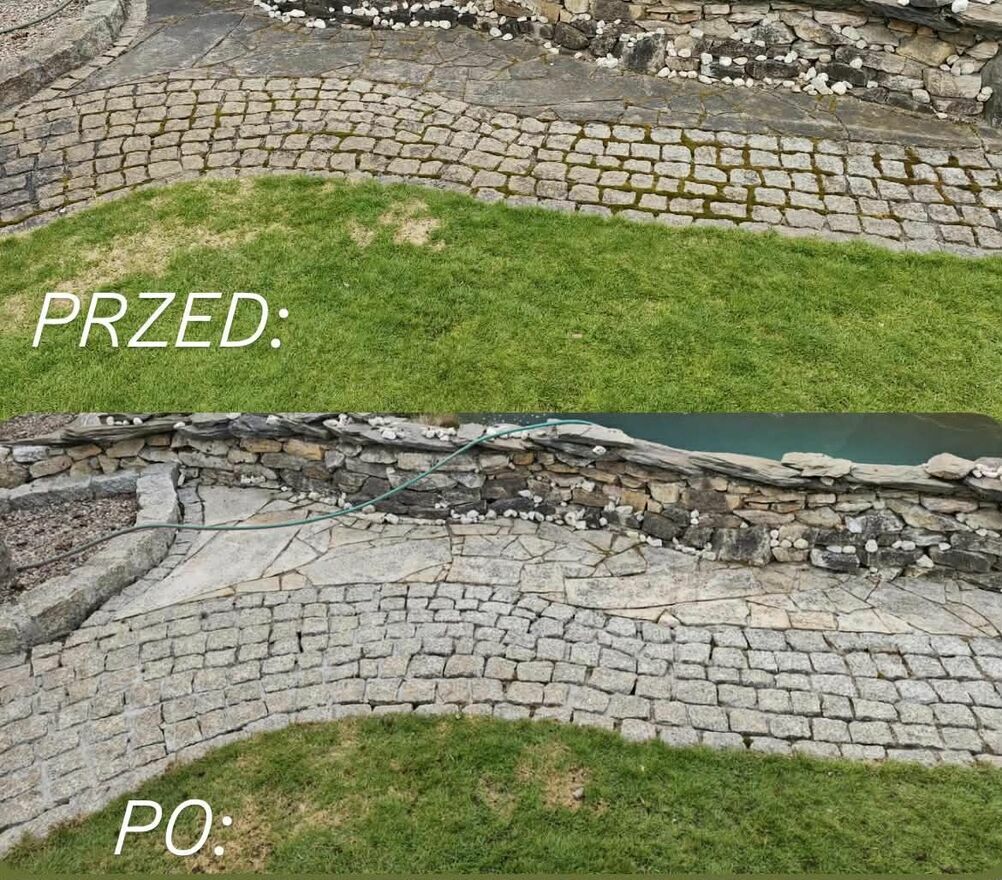 Witam, oferujemy czyszczenie kostki brukowej tarasów płotów chodników oraz podjazdów, oferujemy również czyszczenie elewacji.Pracujemy na profesjonalnym sprzęcie spalinowym wysokociśnieniowym oraz talerzu T-racer